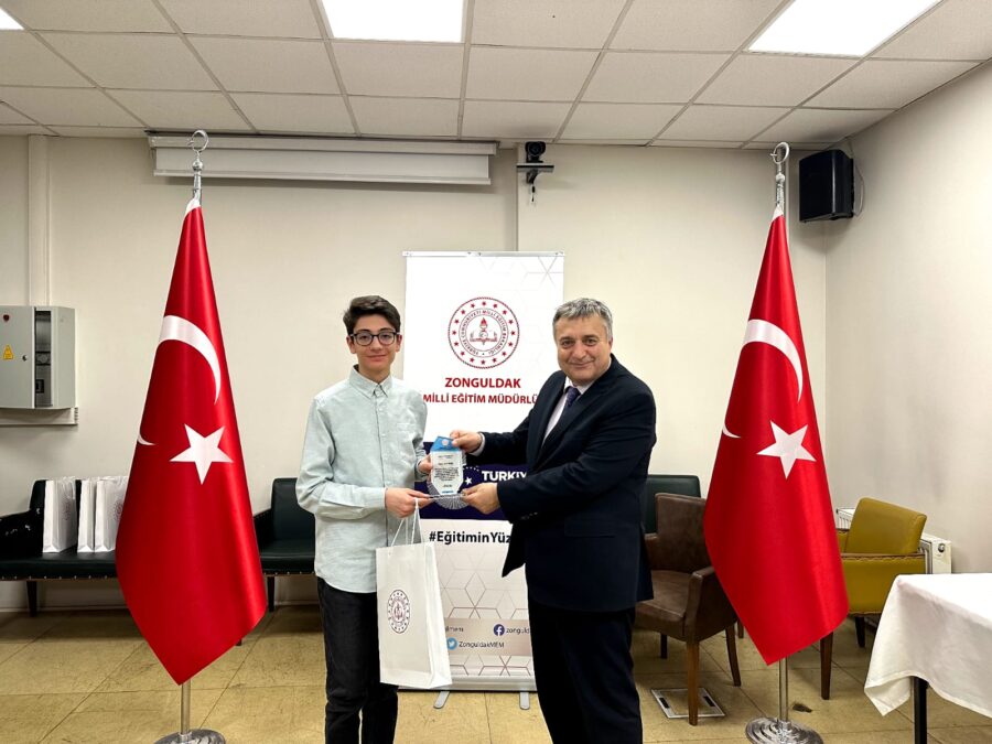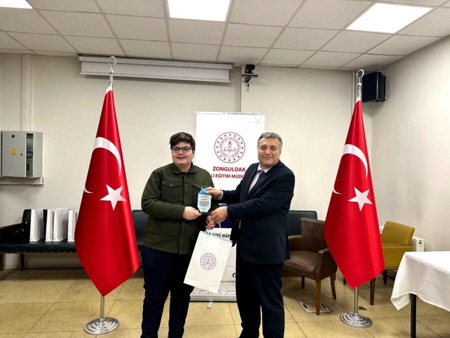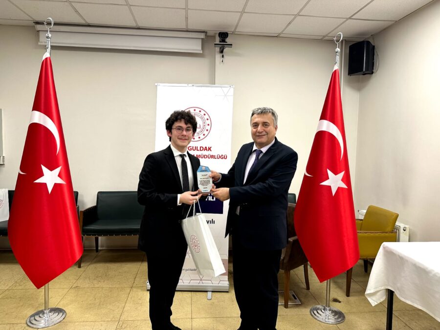 Karadeniz Ereğli Hayrettin Yavuz Bilim ve Sanat Merkezi (BİLSEM) “Seralarda Yenilikçi Isı Kontrolü: Yeni Boya Teknolojisiyle Enerji Verimliliği” Fizik ana alanında birincilik kazandı.
