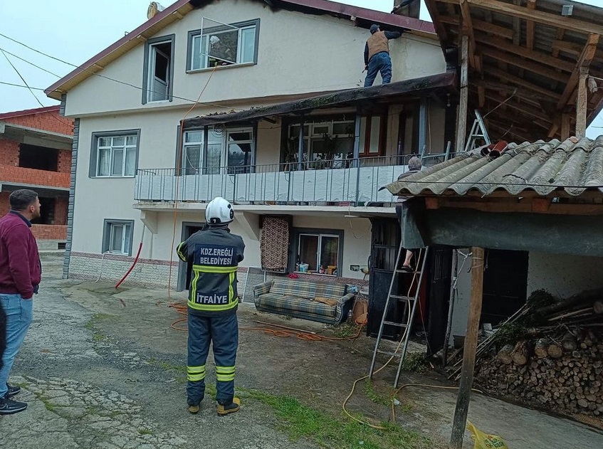 Karadeniz Ereğli ilçesinde bir evin çatısında çıkan yangın paniğe yol açtı. Olay yerine ambulans ve itfaiye ekipleri sevk edildi.
