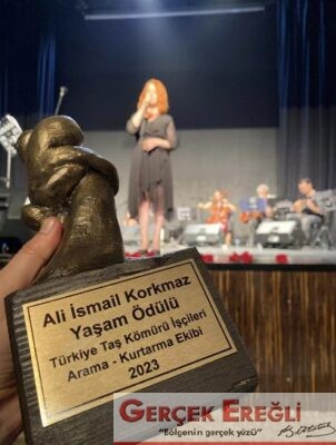 Eskişehir’de Ali İsmail Korkmaz Vakfı (ALİKEV), Eskişehir Bilecik Tabip Odası (EBTO), DİSK Bölge Temsilciliği, KESK Eskişehir Şubeler Platformu, TMMOB İl Koordinasyon Kurulu bu yıl ki yaşam ödülünü, deprem bölgesinde yaptıkları çalışmalar nedeniyle maden işçilerine verdi. İşçiler adında ödülü, Genel Maden İşçileri Sendikası (GMİS) Üzülmez Şube Başkanı Sefer Karakabak ve deprem bölgesinde görev yapan maden işçisi Cüneyt Özfidan aldı. Maden işçileri olarak 6 Şubat 2023 tarihinde meydana gelen depremin toplumun her kesiminde derin yaralar açtığını ifade eden Karakabak, madenciler olarak gönüllü olup depremin etkilendiği illerde görev yaptıklarını söyledi. Karakabak, “Hepimizi derinden yaralayan bir deprem felaketiyle karşı karşıya kaldık. Depremde hayatını kaybedenlere Allah’tan rahmet, ailelerine baş sağlığı ve yaralılara acil şifalar dilerim. Depremin ardından, maden işçilerimizden kurulu tahlisiye ekibimiz çok kısa sürede hazır hale gelerek deprem bölgesine sevki sağlanmıştır. Ardından ise kentimizin birçok bölgesinde ve Bartın’da çalışan madencilerimiz büyük bir vefa örneği göstererek deprem bölgesine gitmek için gönüllü olmuştur. MTA işçilerimiz de gönüllü olarak deprem bölgesinde canla başla görev yapmıştır. TTK ve MTA işçileri olarak yaklaşık 4 bin madencimiz biran bile düşünmeyerek deprem bölgesinde insanlarımızın yardımına koşmuştur. Ülkemizin bizlere ihtiyacı olduğu her an göreve hazır olduğumuzu büyük bir gururla ifade etmek isterim. Ali İsmail Korkmaz Yaşam Ödülü bizim için anlamlı bir ödüldür. Sizlerin huzurunda genç yaşta kaybettiğimiz Ali İsmail Korkmaz’ı saygıyla anıyorum. Bizleri bu ödüle layık gören tüm kurul üyelerine, madenciler ve sendikamız adına teşekkür ederiz.” dedi.