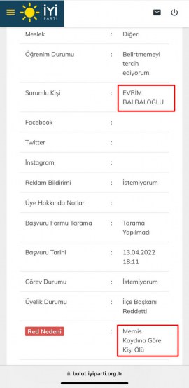 İYİ Parti İlçe Başkanı Evrim Balbaloğlu’nun, ölü kayıt skandalın kamuoyuna yansımasının ardından Yönetim Kurulu üyelerinden savunma isteyerek; parti suçunu üstünden atmaya çalıştığı öğrenildi.