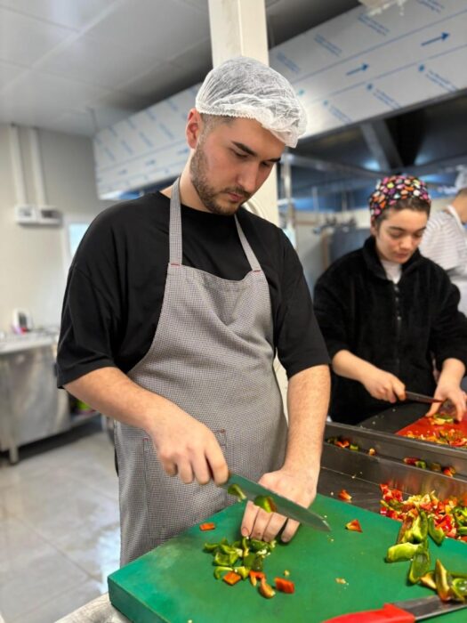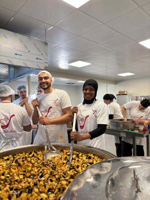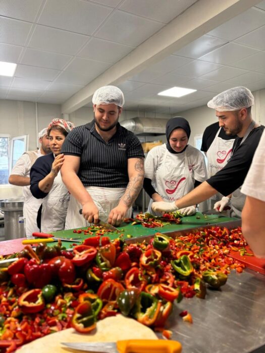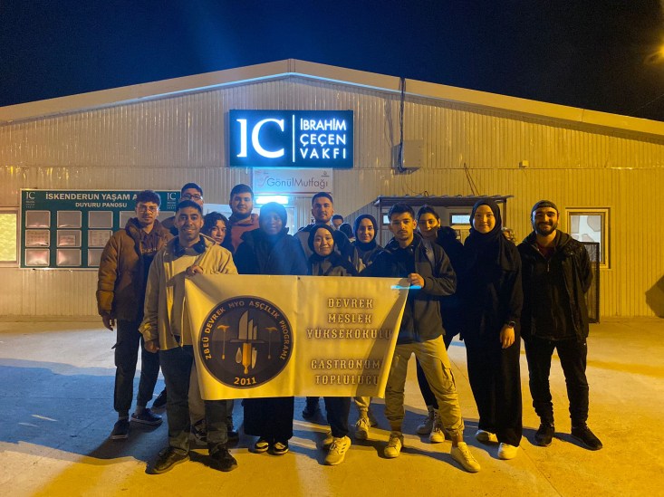 Gençlik ve Spor Bakanlığı koordinasyonunda Ramazan ayı boyunca gerçekleştirilecek olan yemek pişirme ve dağıtım faaliyetlerinde Bakanlık nezdinde gönüllü olarak yer alan 13 ZBEÜ öğrencisi, 14-21 Mart tarihleri arasında Hatay’ın İskenderun ilçesinde, İbrahim Çeçen Konteyner Kent’te gönüllere dokundu. Sosyal Gastronomi Şefi Ebru Baybara Demir öncülüğünde görev aldıkları süre boyunca her gün 10.000 depremzedeye iftar ve sahur hazırlamak için destek olan ZBEÜ öğrencileri, yemeklerin hazırlanması, dağıtımı, bulaşıkların yıkanması ve ortamın temizliği gibi her kademede özverili çalışmaları ile takdir topladı.